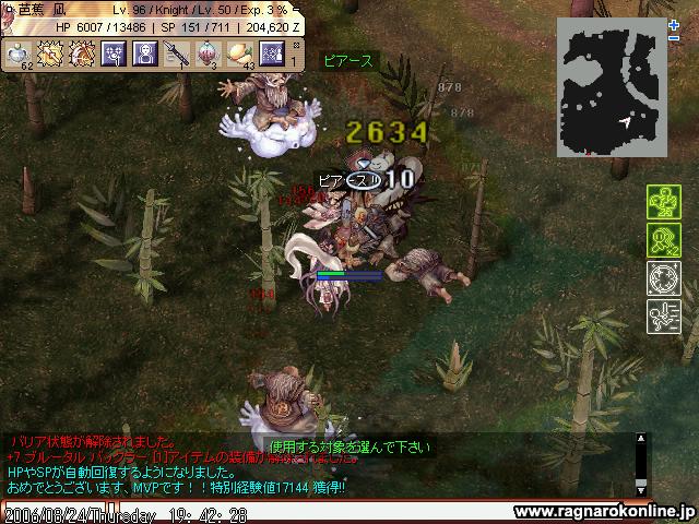今日は黒蛇王が放置だったのでレモンさんを拉致してぬッ殺してみました(・ω・) 計7回あの世に送ったのかな( ^ω^) 途中連続で高級エプロンが出るなど金銭的にうまうまでした(*´ω`*) 2匹目以降はボブさんとむちょ様を拉致して狩ってたのですが、 廃プリ二人イイ(゚∀゚)!! 白P叩かなくても全然HPが減らないのですよねw ソロだと白P300は叩いてる゜+:(;ノД`).:゜+。 途中まーくんから超が放置とのことで西兄貴村に突貫 探してたら見つけたのですがすでに騎士さまが交戦してるもよう(´ω・) だめかなーと思ってたら交戦してた騎士さまがテレポ、 自分の所に超が流れてうまー(゚Д゚) その後3回ほど狩りましたが午後過ぎてからの対抗がすさまじく、 蛇と時間が被ったのを区切りに放置しました(´ω・) 今日の戦利品~ ・黒蛇王、7回没 ・高級エプロン×5古い紫箱×1導師の剣×2 ・羅盤×3イグドラシルの実×5イグドラシルの種×1 ・オークヒーロー、3回没 ・オーク勇者の証×2 こんなところですかね(´ω・) PR |