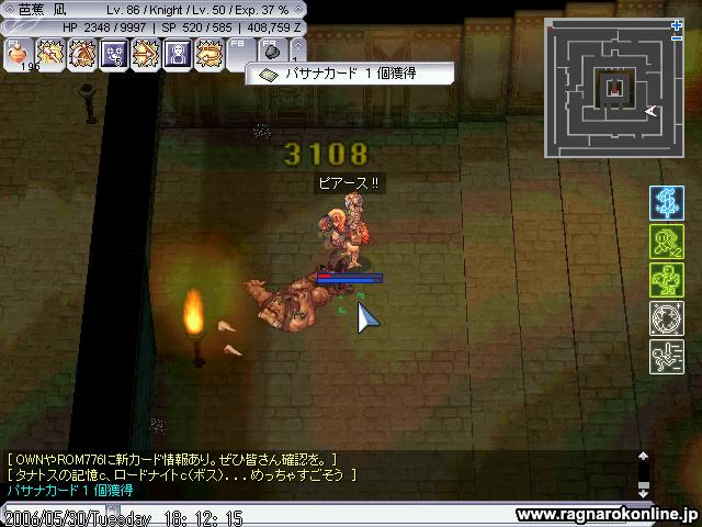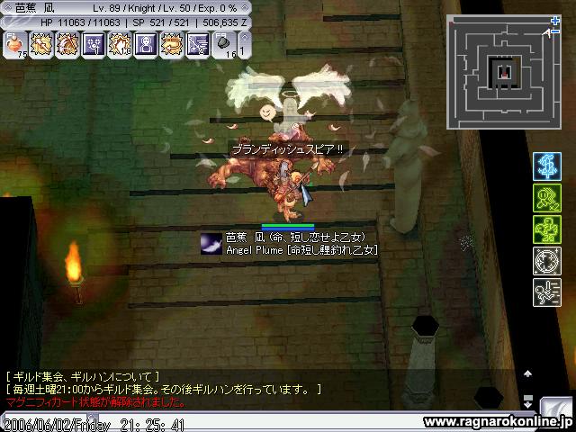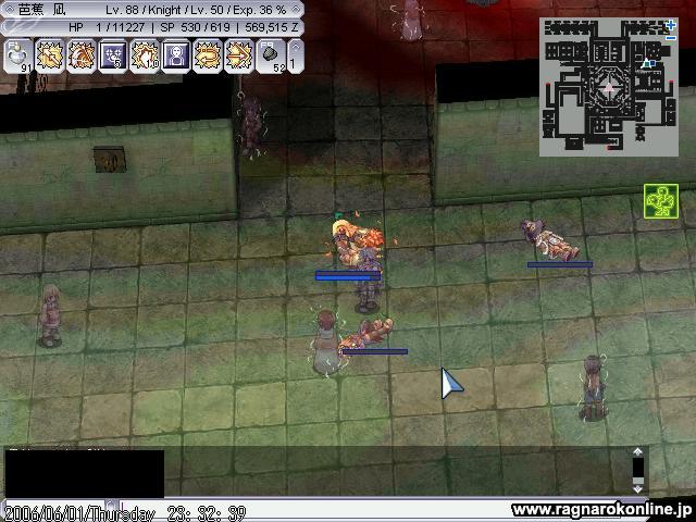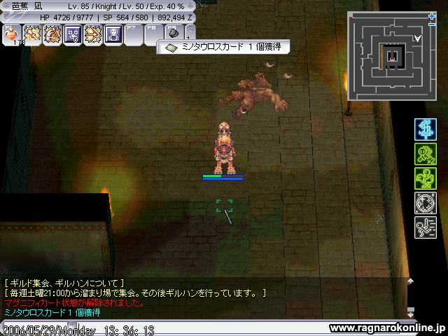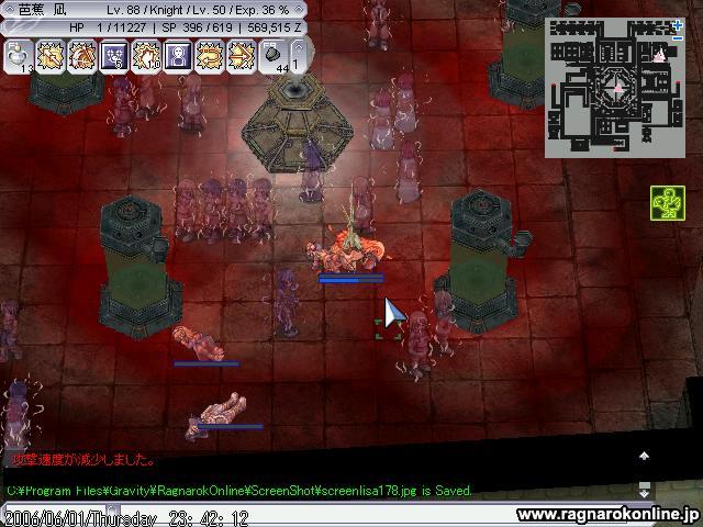 少しいったところで まぁ多かったのもあるのですが、さりげなくアサクロが混ざってたので逝きました。 ギルメンのアサクロさんに起こしてもらいアサクロにリベンジかまそうと突っ込み、 (;´Д`) 最初はSWでうまくいってたのですが横沸きした商人DOPがプリさんに襲い掛かりそれに気をとられSGで凍ったアサクロにプロボしてしまいウィズ様が死亡、当然そのごプリさんも死亡してしまいなんとかテレポして自分は逃れたのですが、戻ってくるときMobを振り切りながらだったのですがIAが切れてしまい結果大型トレインになってしまい自分も死亡(;´Д`) その後ノグロに狩場変更して突撃、 ここでも全滅(;´Д`) ノグロでの全滅は完全に自分の責任ですね、タゲが移るのを恐れて二人を振り切るぐらいの勢いで突っ込みMHを抱え込み、後から来たウィズ様にタゲが移りそこから全滅(;´Д`) 騎士でのPTプレイの経験が少ないのでどう立ち回ればいいのかが分からないのがいたいです。 なれるしかないですね。